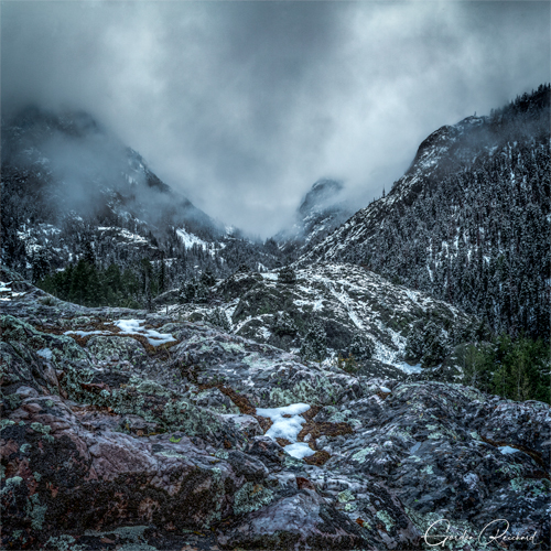 A foggy, moody morning along the Million Dollar Highway! Photo © copyright by Gordon Reichard.