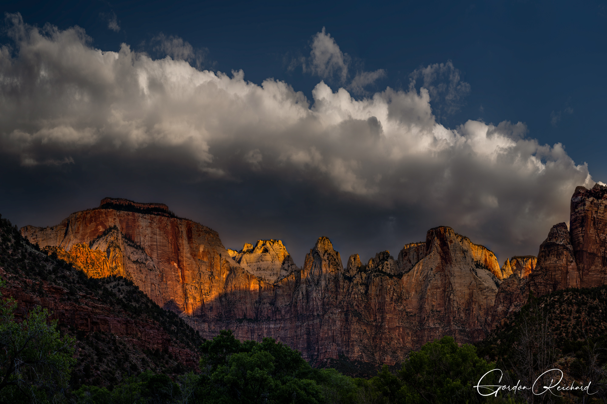 Zion Nation Park Glowing Patriarchs. Photo © copyright by Gordon Reichard.