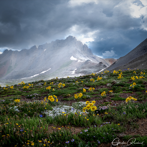 Watching a July Snow Shower Move Across the Mesa. Photo © copyright by Gordon Reichard.