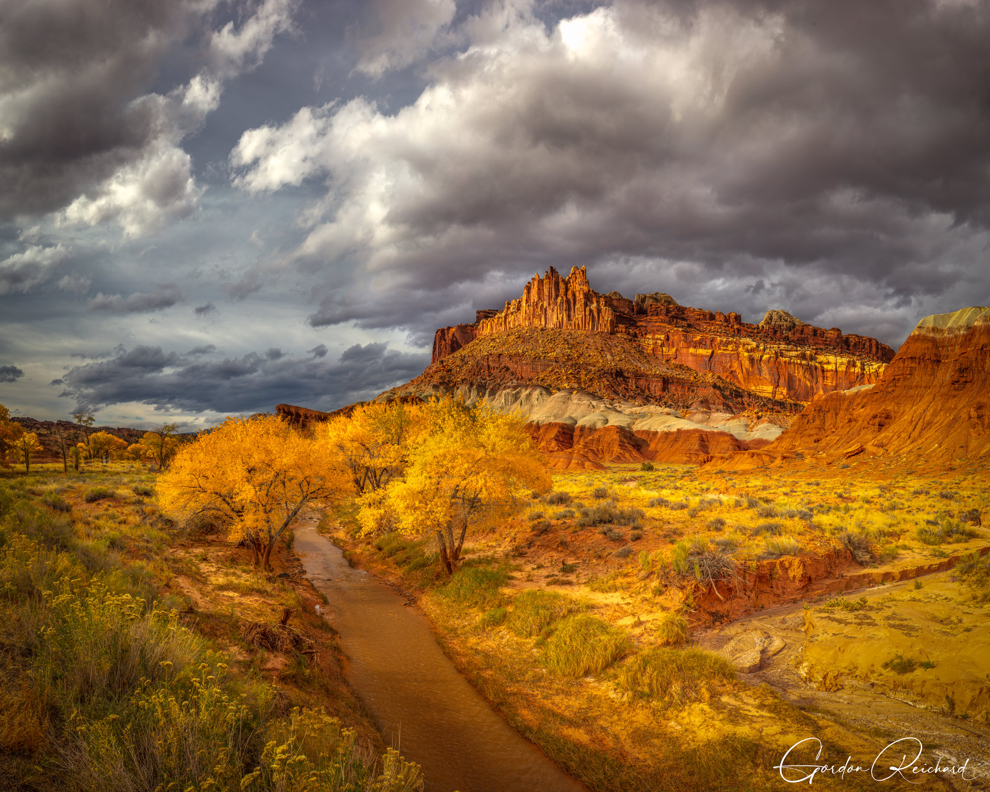 Capital Reef is a National Park with a very old history. The Fremont Native Americans settled in the northern section along the Fremont River around 1,000 AD. The Mormon's later arrived in the 1880's and planted orchids and farmed the rich lands around the current National Park Visitor's Center. Photo © copyright by Gordon Reichard.